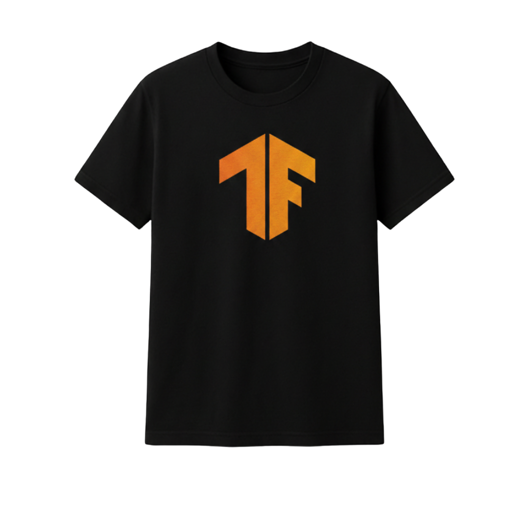 The modern, 3D-inspired “TF” emblem stands out against the dark fabric, representing the industry-standard framework for building and deploying AI models.